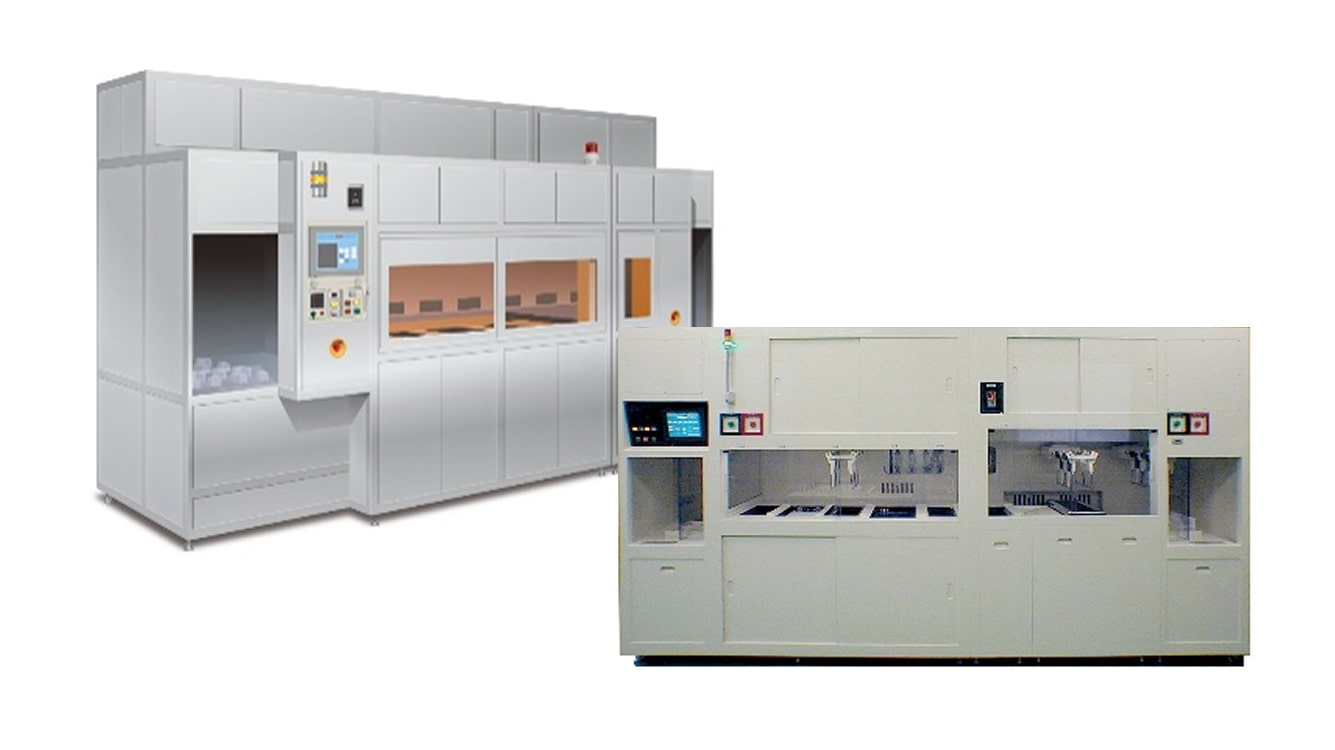 半導体製造における剥離、洗浄、乾燥、メッキ、溶剤再生など、ウエハーや治具、用途に応じて、研究開発向けの少量生産用から量産機まで、前工程分野を中心に幅広い工程に対応しています。